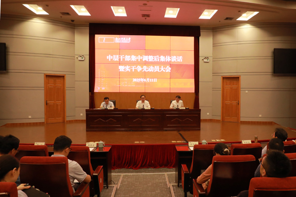 6月11日,学校召开中层干部集中调整后集体谈话暨实干争先动员会。校党委书记赵东福作集体谈话,校纪委书记张华良作廉政 谈话。校长陈建孟主持会议。学校党政班子成员出席,全体中层干部参加会议。